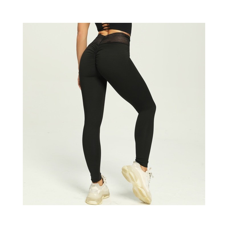 Seamless Dotted Hollow Out Gym Leggings Women Yoga Pants Workout Clothing High Waist Mesh-layer Sexy Tights Activewear